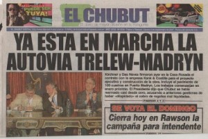 De la rúbrica del acuerdo de marras, dijo que a Mario Das Neves le faltaba sólo saltar de alegría sobre el escritorio de Néstor Kirchner, porque él también firmó el contrato, hay fotos de eso”, subrayó, recordando que ha denunciado permanentemente y casi en soledad esta clase de manejos desde su banca en Rawson.