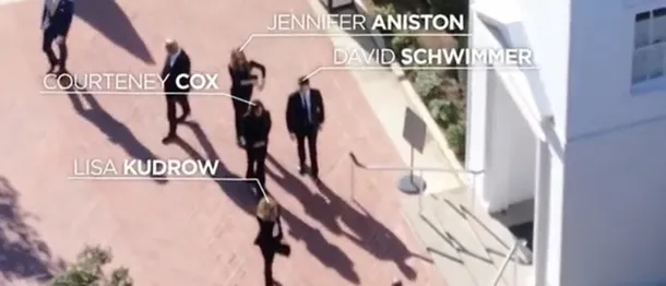 La ceremonia religiosa duró dos horas, comenzando a las tres de la tarde y finalizando a las cinco, con los más allegados: solamente 20 personas. También, se encontraban los cinco protagonistas de Friends: Jennifer Aniston (Rachel); Courtney Cox (Mónica); Lisa Kudrow (Phoebe); Matt LeBlanc (Joey); y David Schwimmer (Ross).