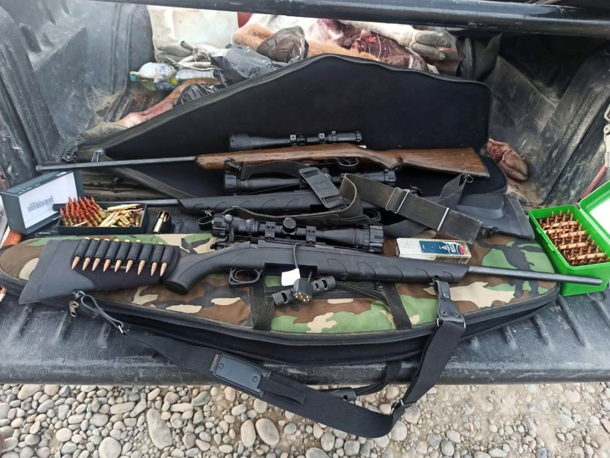 Los individuos carecían de permiso alguno para ejercer la caza y pese a que contaban con la documentación para portar las armas, se determinó que fueran escoltados hasta las instalaciones de la división donde se procedió al secuestro de una carabina semiautomática calibre 22 largo y dos carabinas .308, con tres cartuchos a bala en cargador, nueve cartuchos a bala en brazo de culata, un total de 53 municiones calibre .308, 51 cartuchos a bala libre calibre 22, 60 municiones calibre .308, y dos vainas servidas calibre .308, además de un cargador de carabina calibre 22 y un cuchillo.