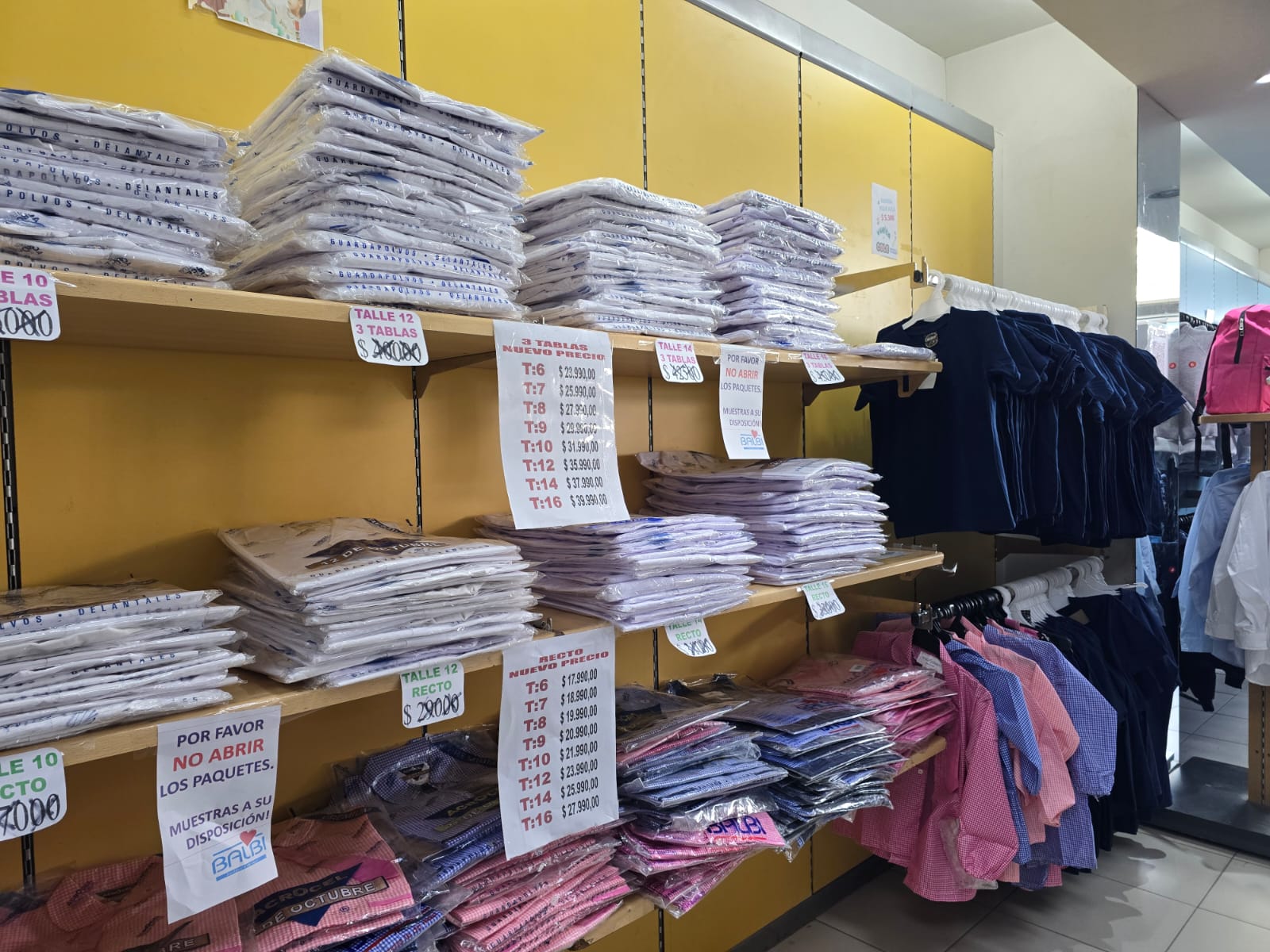 En cuanto a las camisas, ya sean de color blanco o celeste los precios están alrededor de $12.700, los equipos de educación fisica están $29500. «Las remeras por sí solas, también dependiendo el talle, cuestan un total de $5300 a $6300″.
