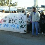 Cuando los amantes del TC comenzaban a llegar al autódromo General San Martin, se encontraron con cerca de un centenar de padres y docentes en lucha quienes se habían convocado desde horas tempranas para repartir panfletos a los automovilistas y público en general que se acercó a presenciar las carreras.