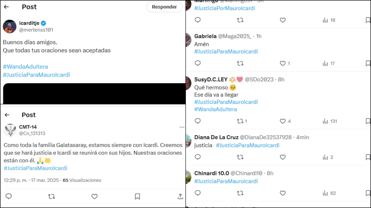 “Buenos días amigos, que todas sus oraciones sean aceptadas”, dice uno de los tuits que se difundieron en las últimas horas. “Como toda la familia Galatasaray, estamos siempre con Icardi. Creemos que se hará justicia y se reunirá con sus hijas. Nuestras oraciones están con él”, escribió otra internauta.
