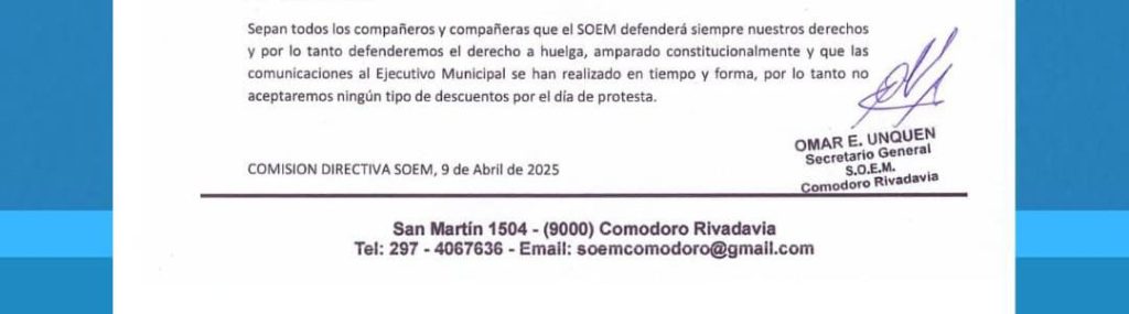 El dirigente sindical también manifestó al aire por Radiocracia su inquietud por el contexto laboral en Comodoro Rivadavia, señalando que: «ya estamos hablando de más de 4 mil desocupados» en distintos gremios. No obstante, destacó que «a nivel municipal, por suerte, todos los compañeros que trabajan dentro de la municipalidad no ha sido tocado nadie». Y advirtió: «Vamos a pelear a muerte para que no nos toque el tema de despidos».