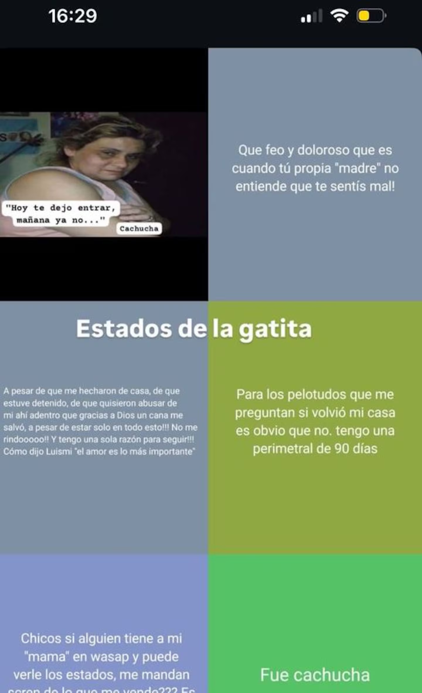 “Qué doloroso que es cuando tu propia ‘madre’ no entiende que te sentís mal!“, “Hoy te dejo entrar, mañana ya no”, escribió con sorna el acusado en una de las historias publicada en sus redes, junto a una foto de su mamá con un despectivo apodo.