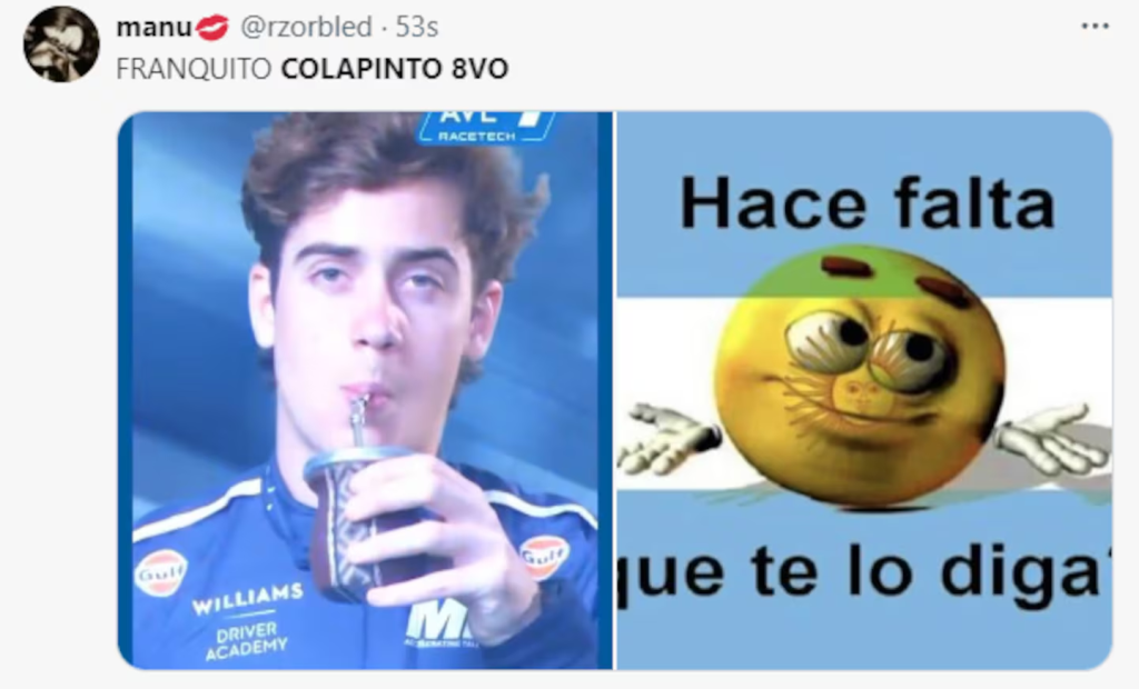 Los mejores memes del debut de Franco Colapinto en la Fórmula 1
