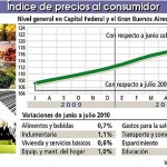 El Indice de Precios al Consumidor (IPC-Costo de Vida) registró durante julio una suba del 0,8 por ciento en comparación a junio, impulsado por los gastos de las vacaciones de invierno, el alza en Indumentaria, junto con Alimentos y Bebidas, informó hoy el Instituto Nacional de Estadística y Censos (INDEC).