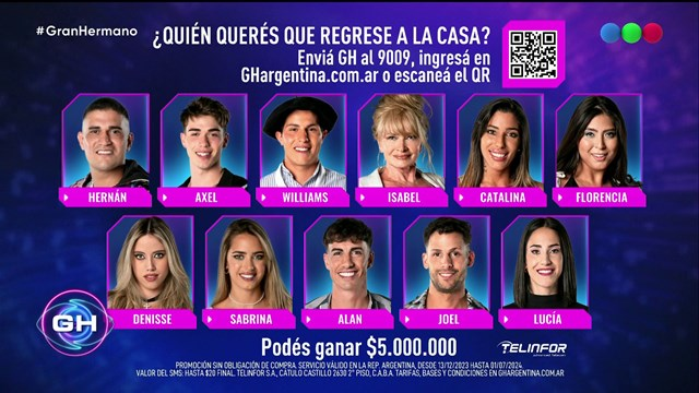 Hernán, Axel, Williams, Isabel, Catalina, Florencia, Denisse, Alan, Sabrina, Joel y Lucía son los jugadores que pueden volver a la casa. Ya están las vías de votación habilitadas.