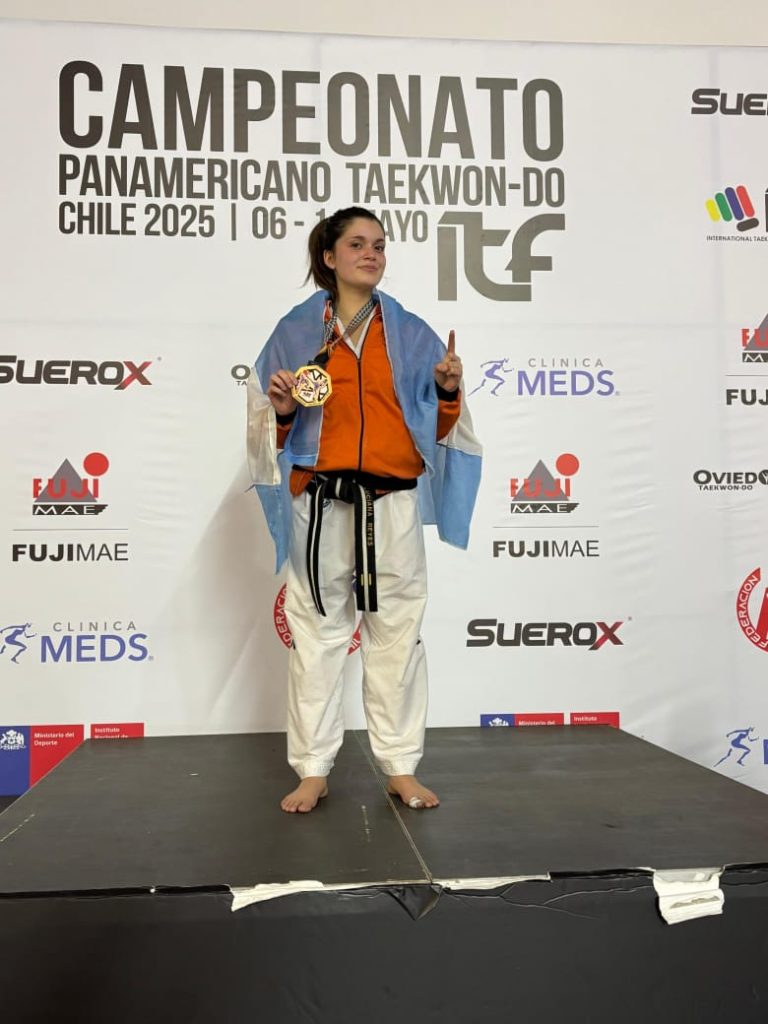 Ayer, Luciana alcanzó la cima del podio en Santiago de Chile, consolidando su posición como una de las promesas del taekwondo argentino.