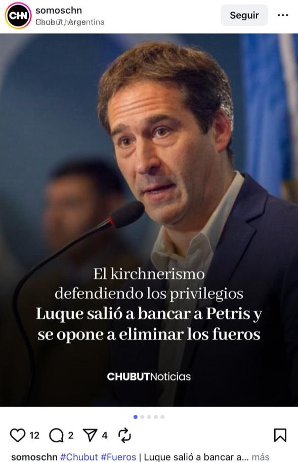 El precandidato a diputado provincial Juan Pablo Luque lanzó duras acusaciones contra el portal Chubut Noticias, al que señaló por difundir publicaciones que, según sostuvo, lo atacan personalmente y distorsionan sus declaraciones. «Este portal, que dedica la mayoría de los posteos a endulzar al gobernador y a pegarme a mí, no solo miente –como en esta publicación– con declaraciones que yo no hice, sino que además está manejado y pautado ¡por un funcionario provincial!», expresó a través de sus redes sociales.