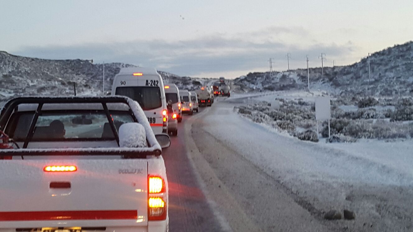 El titular de Defensa Civil, Alejandro Salinas confirmó en diálogo con FM La Petrolera 89.3 MHzque “en la intersección de las Avenidas Kennedy y Rivadavia había varios vehículos y colectivos atravesados, por lo que desde las siete de la mañana estamos arrojando sal”.