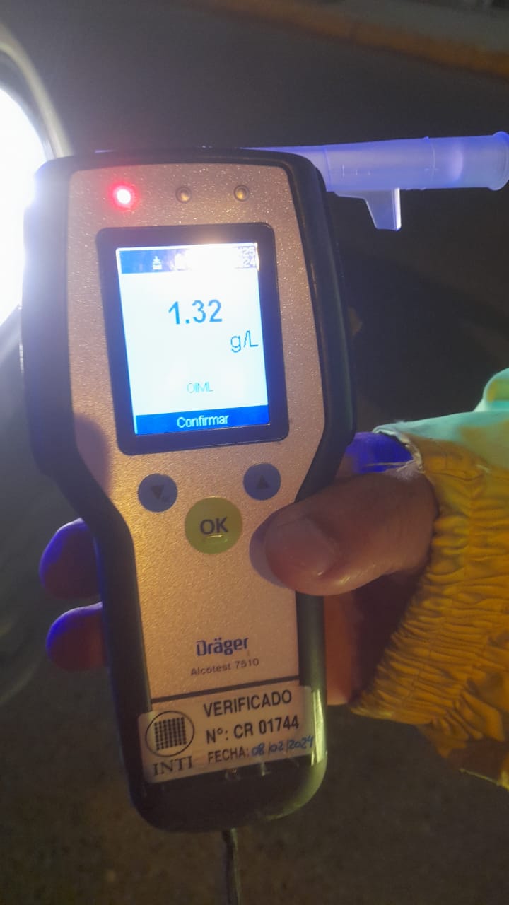 En el lugar, se hizo presente efectivos y personal de Tránsito Municipal que le realizó el test de alcoholemia correspondiente al hombre, arrojando un resultado positivo de 1,32 g/L de alcohol en sangre.