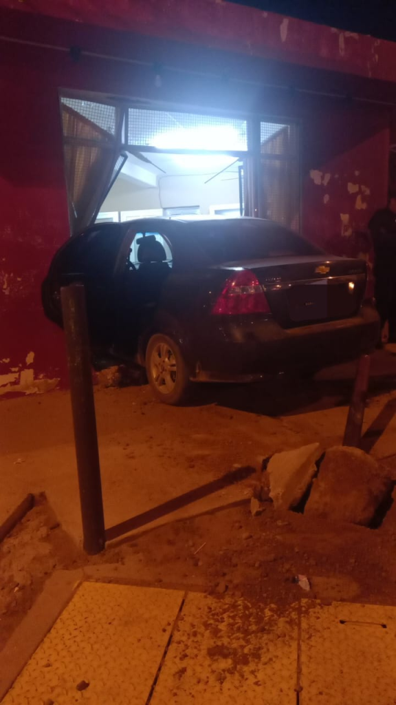 Ayer, personal policial de Puerto Madryn se presentó en calle Buenos Aires debido a que un conductor alcoholizado incrustó su vehículo en una vivienda, tras perder el control del rodado.