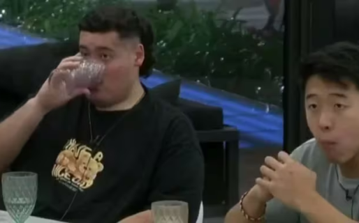 Mientras todos comían, el cantante de cumbia sorprendió a su compañero por una reacción que podría ser severamente sancionada por Big. El artista arrojó el agua que tenía en la copa y su compañero no lo pudo creer.