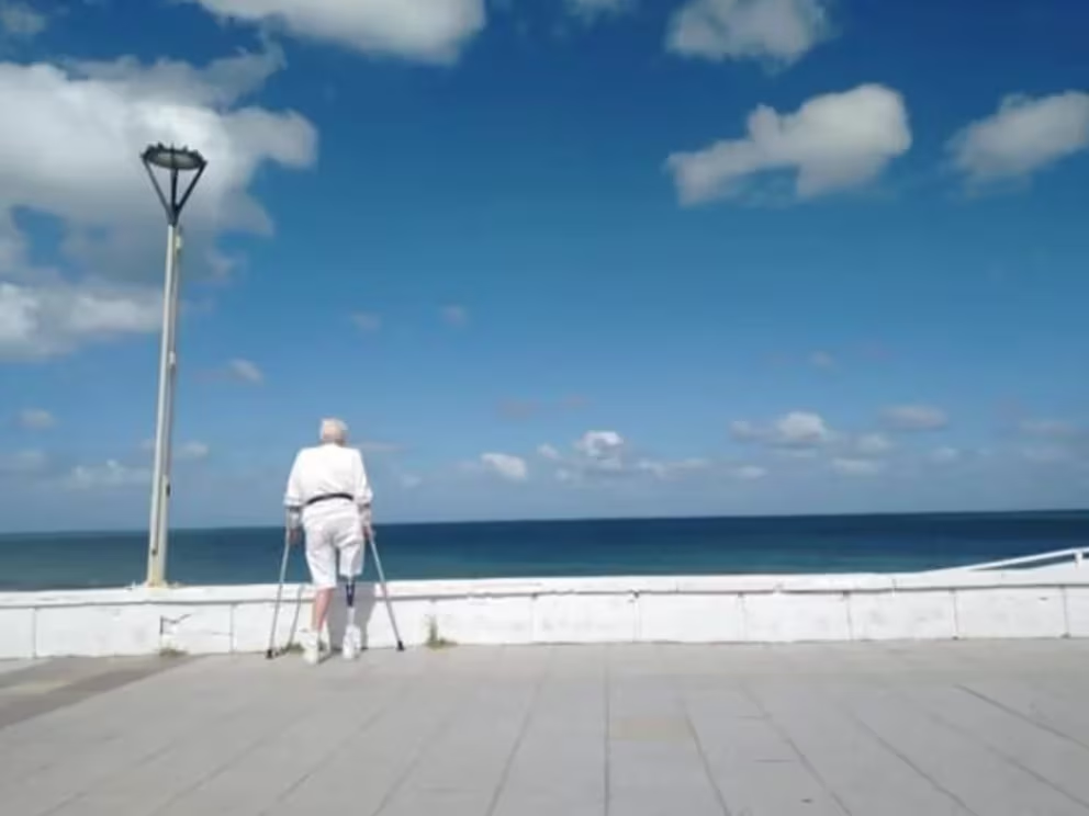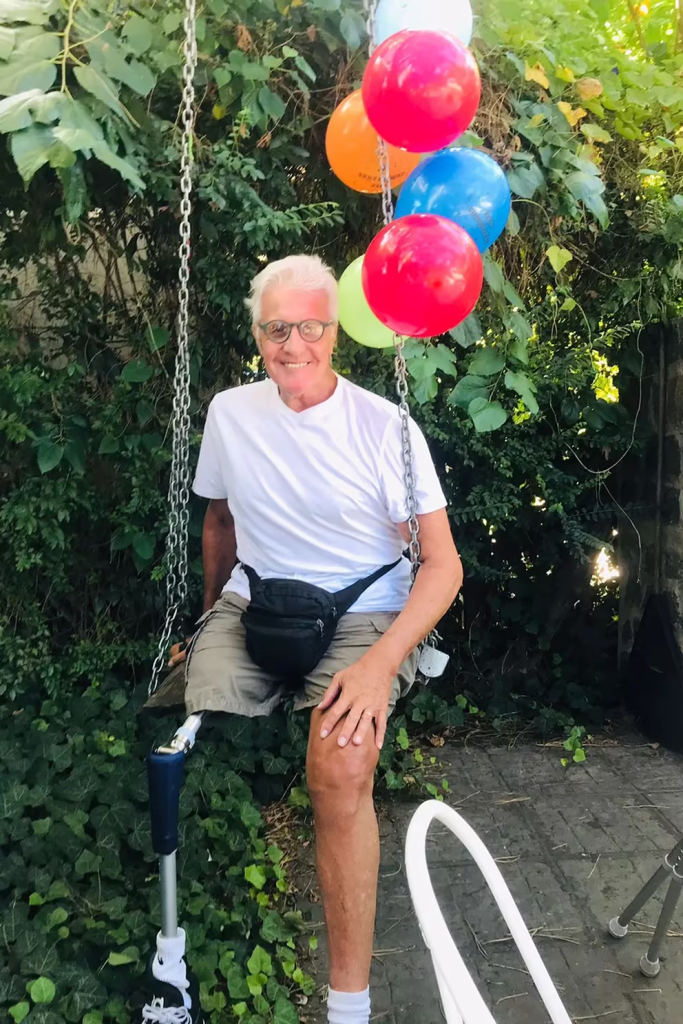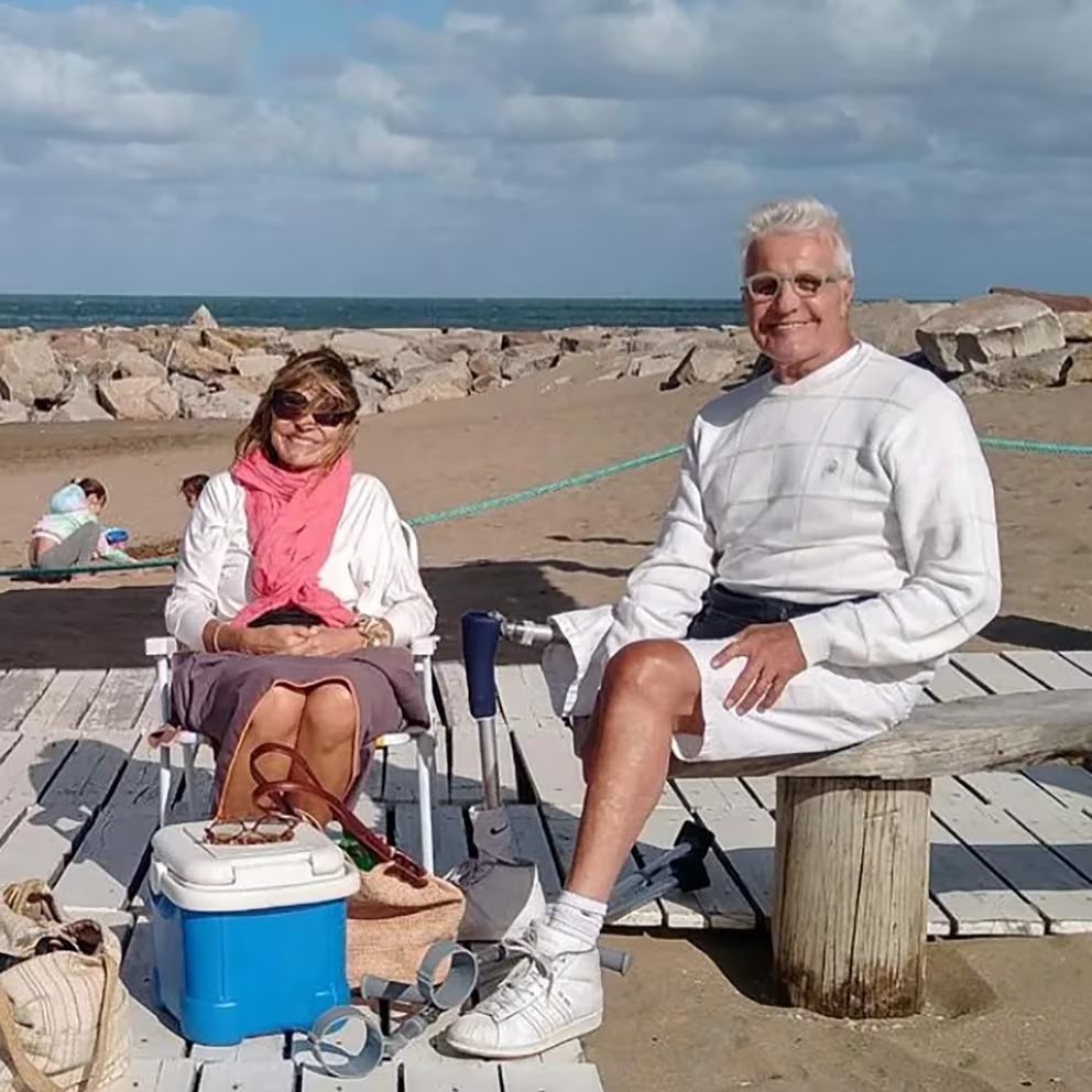 «En julio ya estaba con un andador, después vino la prótesis y mis bastones canadienses o, también el scooter que me regaló una amiga llamada Aída a instancias de otro amigo Alberto Kañevsky. ¡Hoy lo que me resulta más cómodo es el scooter! Lo uso hasta en casa. Porque tengo una canastita y eso me permite tener las manos libres y no ocupadas con los bastones canadienses. El 31 de diciembre de 2023 lo pasamos con Lelen en Mar del Plata y como acto de independencia, en un momento en que me quedé solo en el Museo Provincial de Arte Contemporáneo, agarré mis bastones y di la vuelta completa al lobo de mar gigante de Marta Minujín. ¡Me sentí muy bien!”.