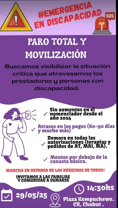 Durante la movilización, los manifestantes llevaron carteles con mensajes que reflejaban la urgencia de la situación, como “La discapacidad no espera”, “Aumento, pagos a término, queremos cobrar” y “Pagos 60/90 días no se aguanta más”. También se pudieron ver pancartas con la consigna “#Emergencia en Discapacidad”, que evidencian la crítica realidad que atraviesa el sector.