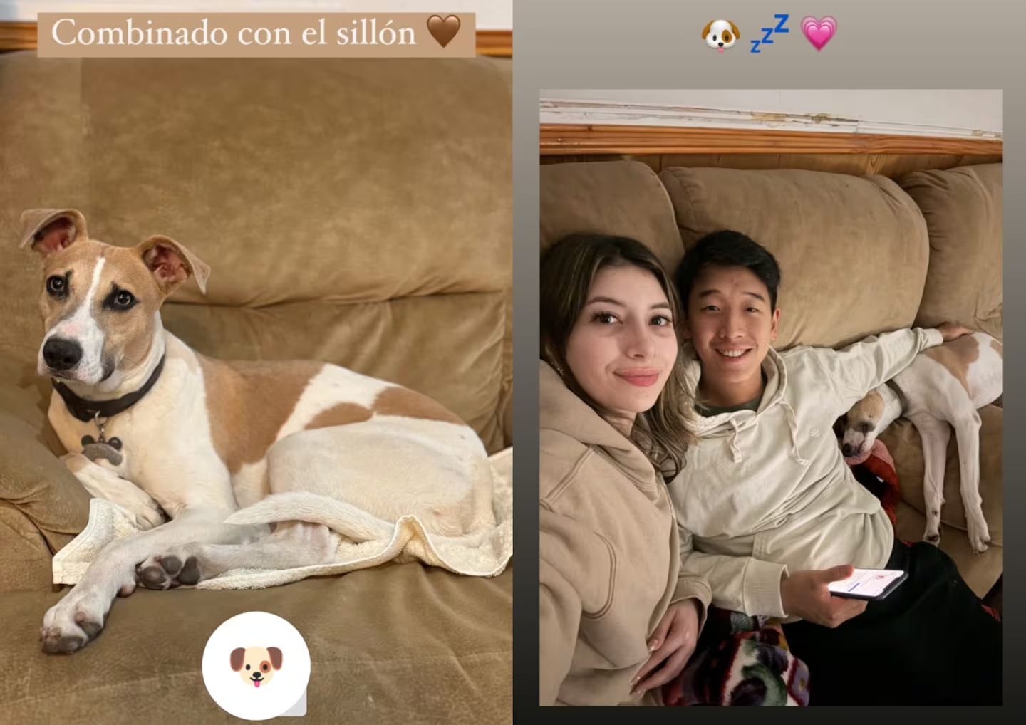 A través de sus redes sociales, el “Chino” y su novia Marisol compartieron fotos de su convivencia con el perrito. “Combina con el sillón”, dijo la joven en una historia que subió a su Instagram.
