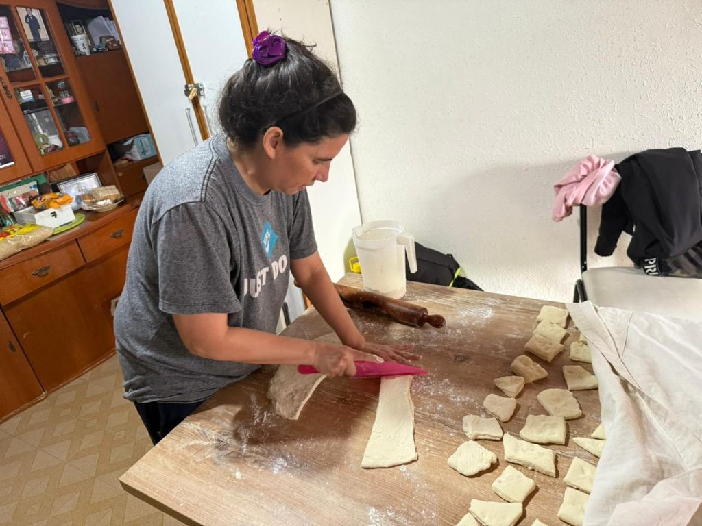 Dos veces por semana, los martes y jueves, preparan leche, pan, tortafritas y otras comidas caseras. “Los chicos vienen con una botella y les damos la leche. Se llevan algo en una bolsita, y algunos adolescentes se quedan a charlar un rato”, cuentan.