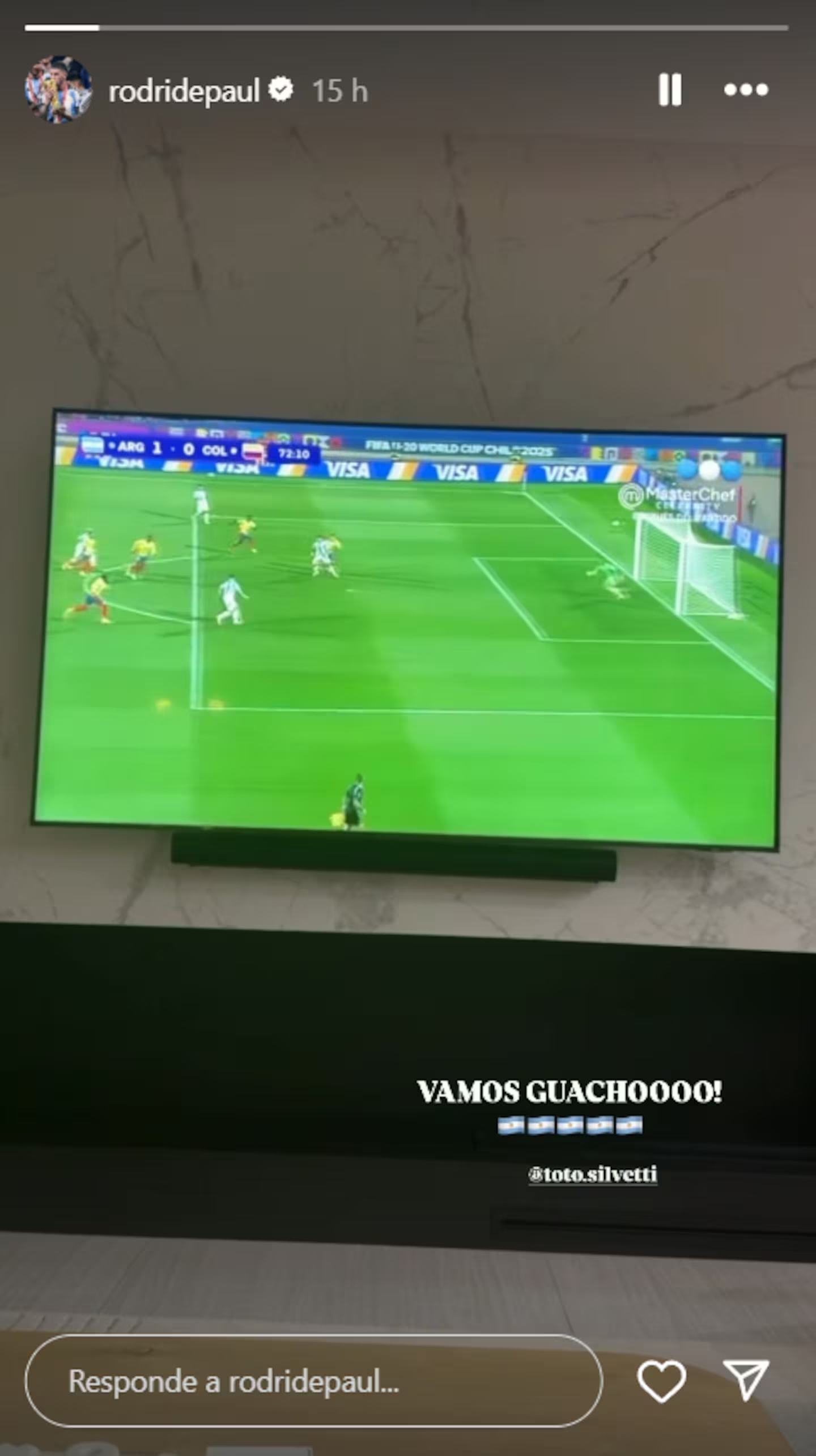 Otro de los referentes de la Selección que festejó la victoria de la Sub 20 fue Rodrigo De Paul, quien grabó el gol de Silvetti y lo subió a sus historias de Instagram. “Vamos, guacho”, destacó el volante del Inter Miami a su joven compañero.