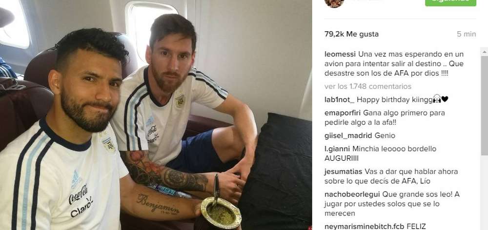 «Qué desastre son los de la AFA», estalló la ‘Pulga’ por el retraso del vuelo de la Selección hacia Nueva Jersey. «Una vez mas esperando en un avión para intentar salir al destino», escribió en Instagram.