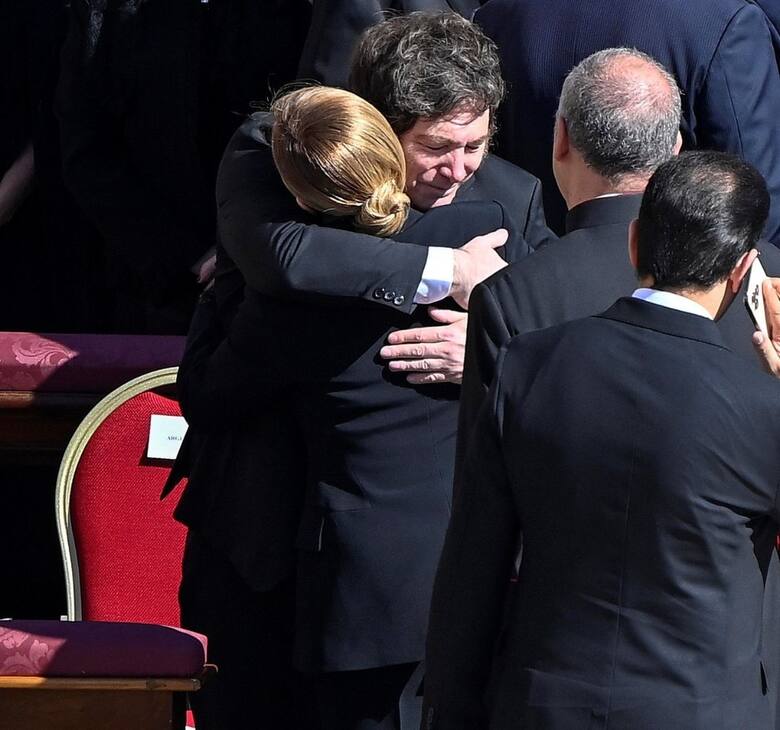 Como presidente del país donde nació el Papa Francisco, Milei estuvo ubicado en un lugar privilegiado entre los mandatarios internacionales, al igual que Meloni, primera ministra de Italia, otro país con un tratamiento especial. Milei y Meloni se dieron un abrazo fuerte al verse.