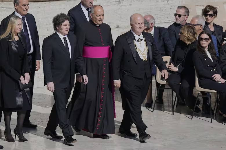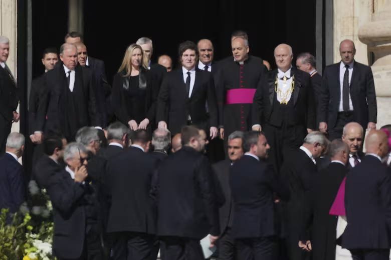 Fue un momento dramático en una mañana cargada de sensaciones, en un escenario imponente, con 250.000 personas agolpadas para despedirse de Jorge Bergoglio, el papa argentino. Milei asistió al igual que otros 50 jefes de Estado, diez monarcas y cientos de representantes oficiales de todo el mundo.