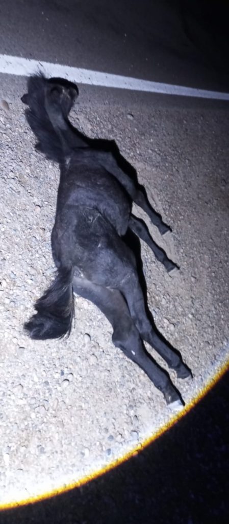 Como medida preventiva para evitar nuevos accidentes, el equino fallecido fue retirado de la banquina y trasladado hacia un campo cercano.