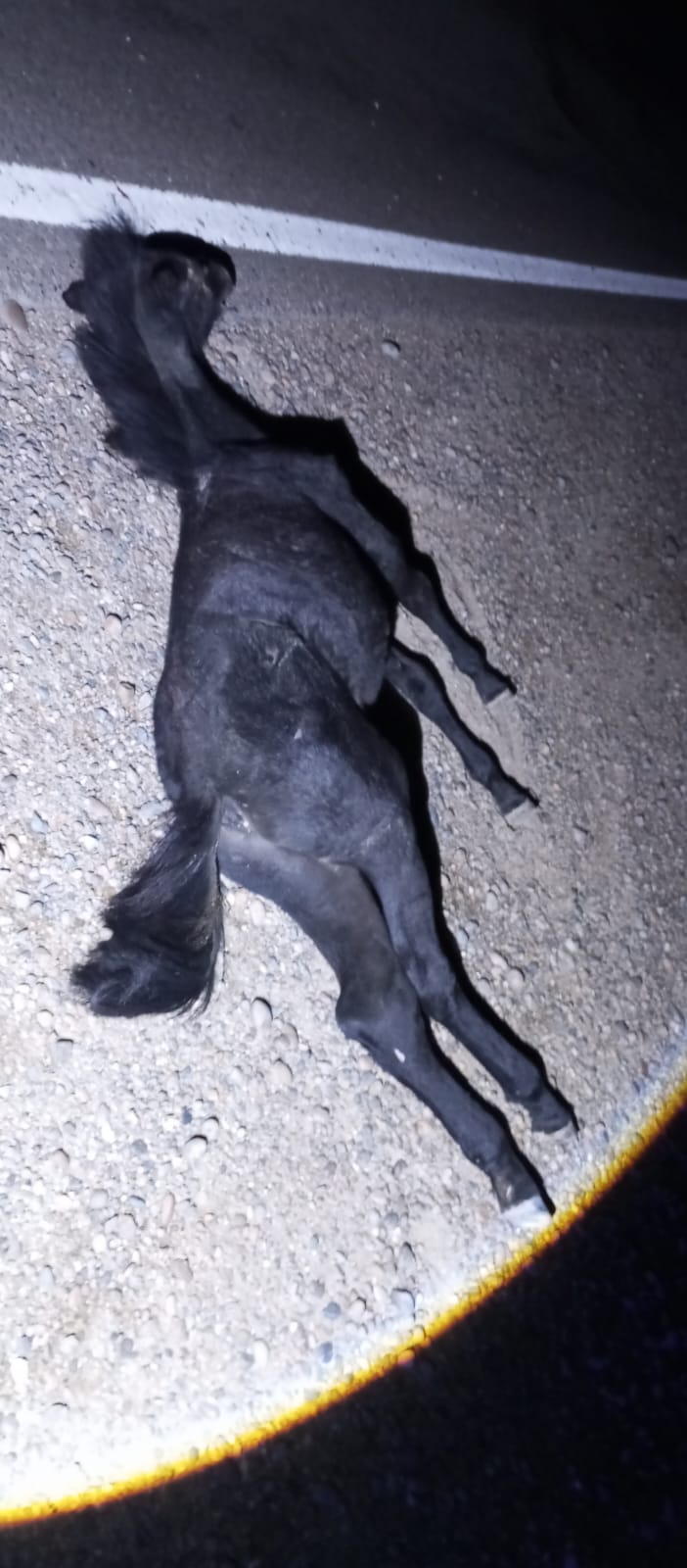 Allí, encontraron un potrillo de color negro, sin marcas visibles, que yacía sin vida al costado de la cinta asfáltica. Afortunadamente, no se constataron personas lesionadas a causa de la colisión.