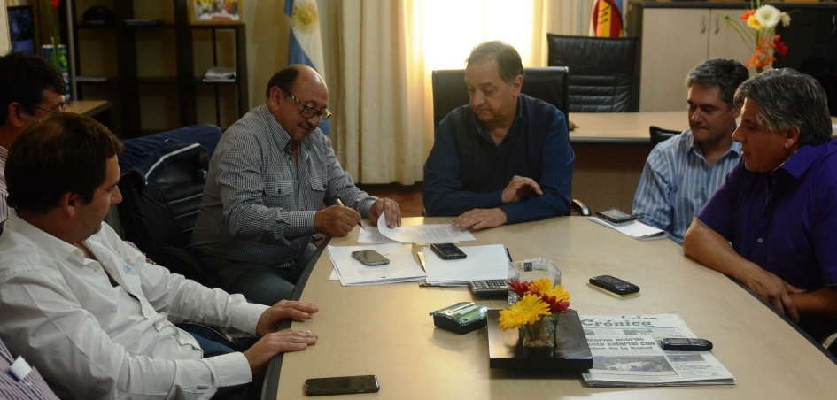 Durante la rúbrica del acuerdo, estuvieron presentes el viceintendente Juan Pablo Luque; el secretario de Gobierno y Función Pública, Máximo Naumann; los concejales Mario Soto, Ricardo Gaitán y Pablo Martínez; el secretario General de la Asociación del Personal Jerárquico (APJ), Alfredo Prior; y su par del Sindicato de Obreros y Empleados Municipales (SOEM), David González.