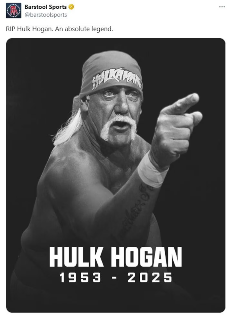 La leyenda de la lucha libre profesional Hulk Hogan murió a los 71 años tras sufrir un paro cardíaco en su residencia de Clearwater, Florida, según informó TMZ Sports.