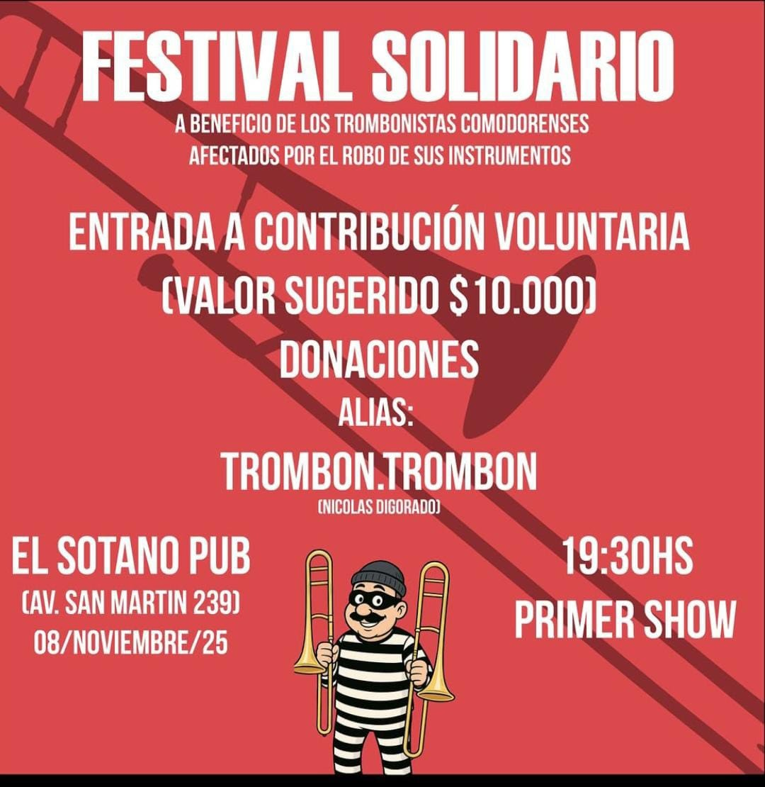 Ante la situación, organizaron rápidamente un evento para recaudar fondos y acompañar al músico. La entrada será a contribución voluntaria (con un valor sugerido de $10.000), y también se podrán realizar donaciones a la cuenta alias: trombon.trombon (Nicolás Digorado).