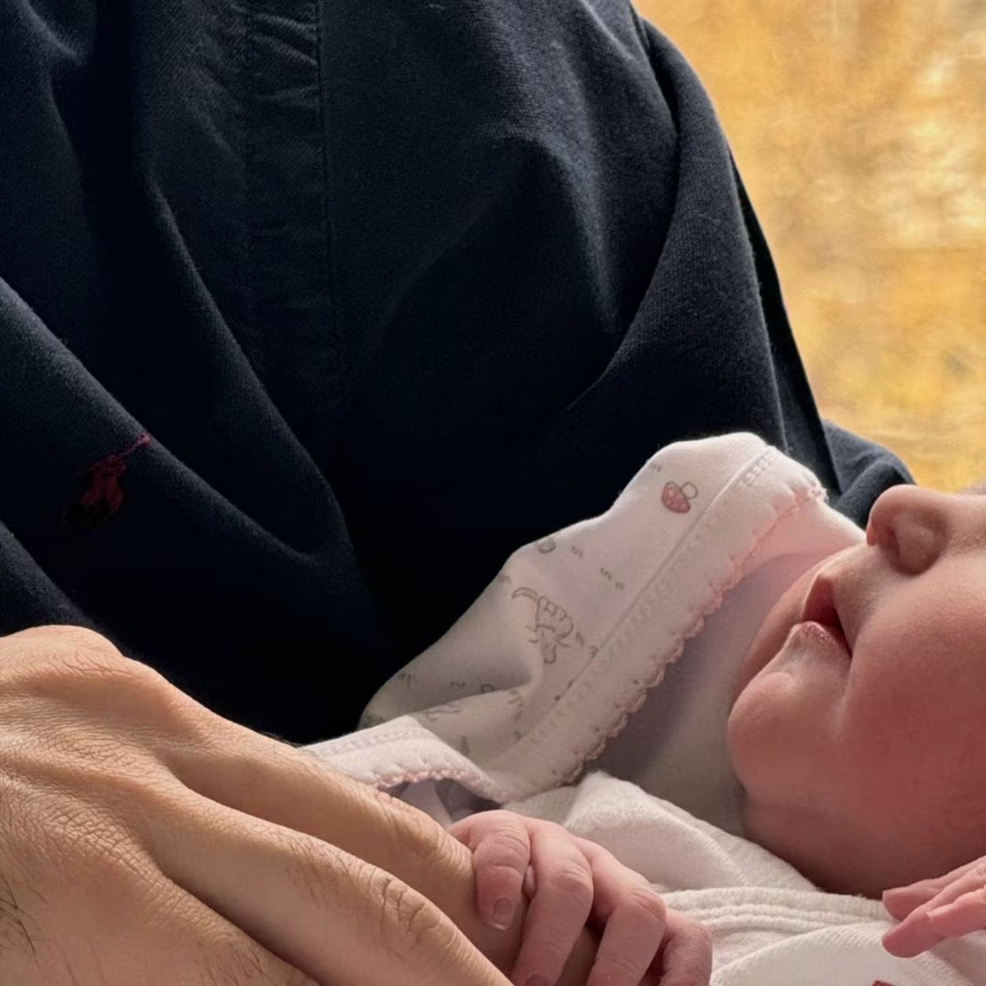 “Se adelantó nuestra primavera”, comienza el texto que acompaña la imagen de la nariz y la boca de la recién nacida.