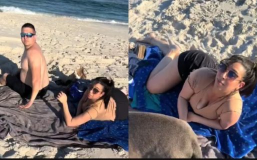 El padre del bebé en camino, al observar el escándalo que se había generado en la playa, delante de todos, comenzó a juntar sus cosas para ponerle fin al episodio. Mientras que la mujer, siguió sus pasos y por momentos se reía de lo que estaba ocurriendo.