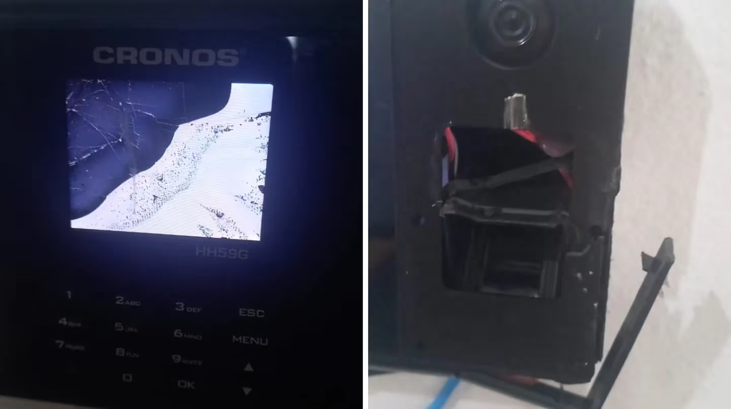 El suceso quedó registrado por las cámaras de seguridad del organismo, en cuyas imágenes se puede ver el momento exacto en el que cuatro individuos llegan al lugar mientras uno de ellos destruye el dispositivo de control con un martillo.