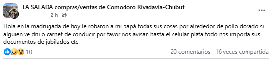 Su hija contó en redes que entre lo perdido están documentos importantes como el DNI, el carnet de conducir y papeles de la jubilación, además del celular y algo de plata.