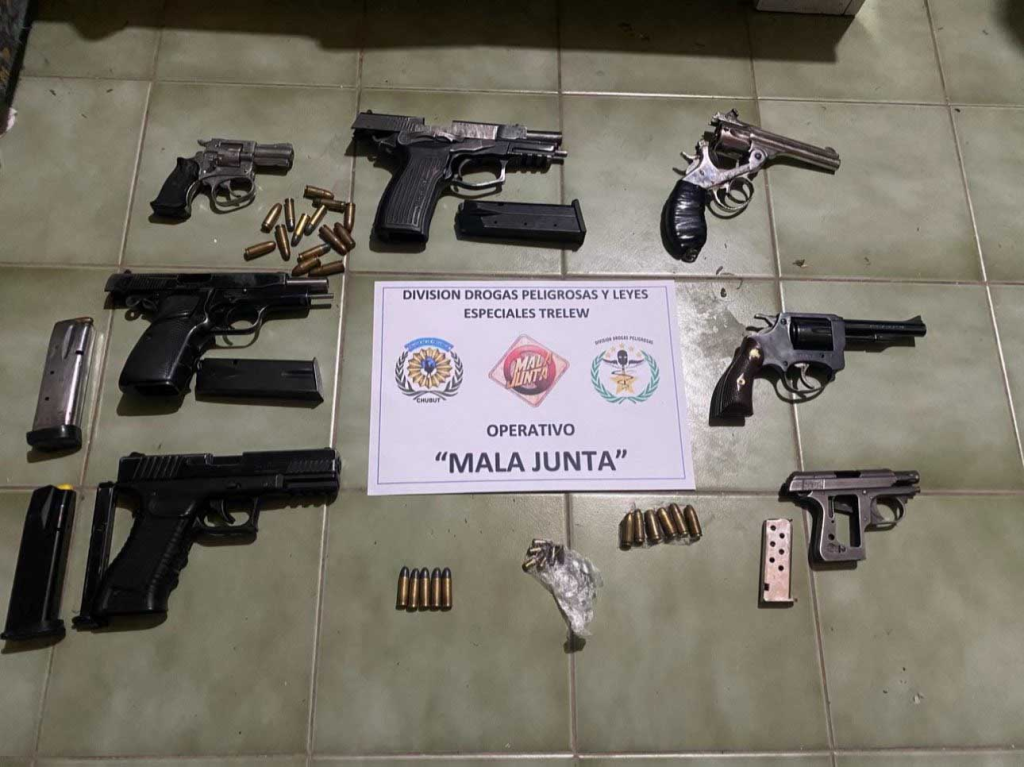 Luego de cinco meses de una exhaustiva investigación, llevada adelante por la División Drogas de Trelew, la Policía del Chubut desarticuló una banda dedicada a la comercialización de estupefacientes en esta ciudad. Tras un megaoperativo que incluyó 19 allanamientos, 8 personas fueron detenidas -entre ellas una mujer-, secuestrándose además 15 kilos de marihuana, más de un kilo de cocaína y 13 armas de fuego junto a municiones calibre 9 milímetros.