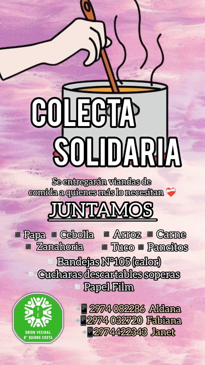 Quienes deseen colaborar pueden dirigirse a la vecinal del Quirno Costa y hablar con Fabiana o Janet, representantes de la comisión directiva que están recolectando las donaciones.