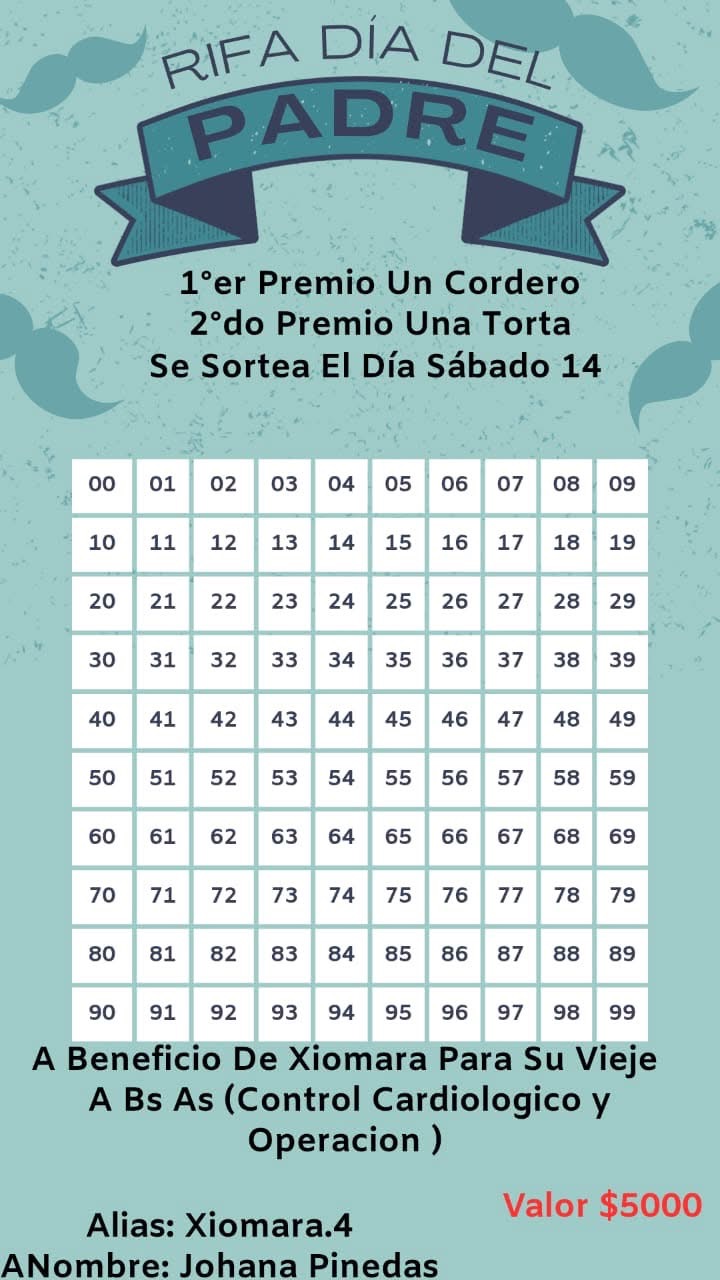 El valor de cada número para participar en la rifa es de $5.000, y se puede colaborar mediante Mercado Pago, utilizando el alias Xiomara.4, a nombre de Johana Pinedas. Sus seres queridos apelan a la solidaridad de la comunidad para que Xiomara reciba la atención médica que tanto necesita.