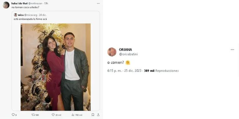 Ante la firmeza de sus seguidores de creer que pronto Oriana Sabatini anunciaría que espera un bebé con Paulo Dybala tras la propuesta de casamiento, la modelo rompió el silencio. Todo comenzó cuando una usuaria de X (ex Twitter) mostró la foto navideña de la pareja y expresó: “Está embarazada lo firmo acá”