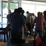 Alpesca ingresaron a la confitería de “Puchero Center” ubicada frente a la Legislatura para atacar a golpes a Federico Otero quien dice ser el “dueño” de la empresa pesquera madrynense. En ese momento se le estaba haciéndole una nota al empresario cuando unos 20 trabajadores aparecieron por las dos puertas del ingreso a la confitería y a gritos de “ladrón”, “mentiroso”, “te vamos a cag.. a palos” comenzó una gresca que terminó con el empresario muy golpeado y tirado en piso. En ese momento dos agentes de la policía, una mujer y un hombre, mucho no pudieron hacer para impedir que Otero fuera alcanzado por los puños de los trabajadores enardecidos y además recibió un sillazo que voló de un sector a otro de la confitería cayendo la pesada estructura en la cabeza del empresario.