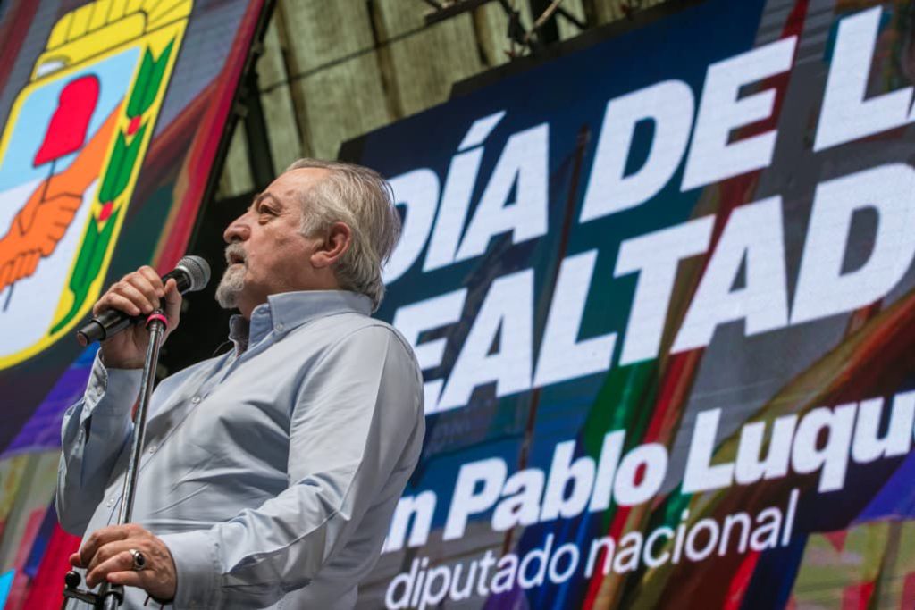 El intendente declaró: «Por eso redoblamos los esfuerzos y hoy el movimiento obrero que está presente hoy y le digo gracias a los compañeros secretarios generales, que sigamos pensando en ese país que lo levantamos entre todos».