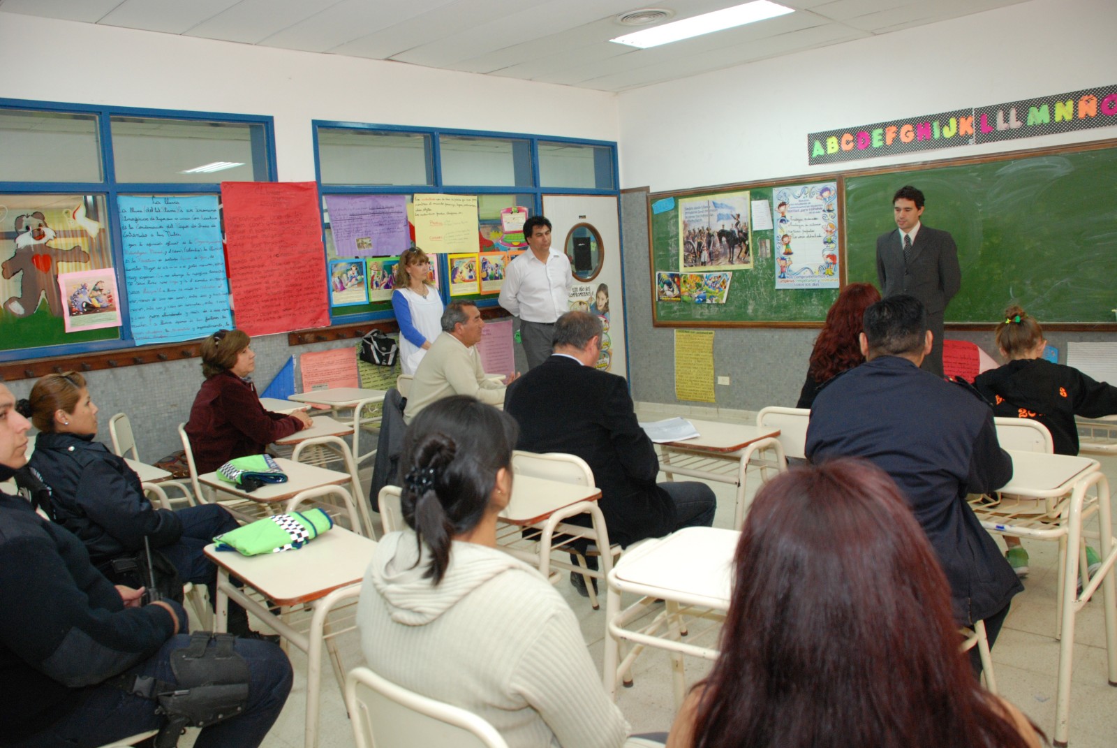 El Director General de Políticas Estratégicas en Prevención del Delito de la provincia, Víctor Bezunartea, junto con personal técnico de la Secretaría de Seguridad y Justicia del Chubut, y la Policía Comunitaria, mantuvo en el mediodía de hoy una reunión con padres del establecimiento educativo ubicado sobre calle Tres Sargentos y Juana Azurduy del Barrio Juan XXIII de la cuidad petrolera, quienes se sumarán al grupo de voluntarios que participan del Programa Corredores Seguros.