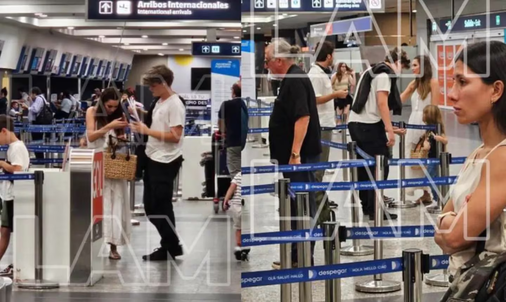 Pampita y Benjamín Vicuña fueron vistos en el aeropuerto. Los retrataron in fraganti minutos antes de que el actor hiciera el check-in, ya que viajó a Chile acompañado de sus cinco hijos. Las fotos fueron difundidas en el Twitter de LAM (América), se viralizaron rápidamente y un detalle llamó la atención.