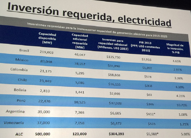 Para Ramón Espinasa, jefe de la División Energía del Banco Interamericano del Desarrollo (BID), señaló en el 56° Congreso de la Asociación Latinoamericano del Acero (Alacero), la Argentina precisa inversiones por US$ 6.605 millones para sumar 7.203 Mw en los próximos años.
