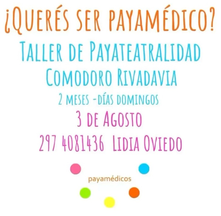 ¿Te gustaría convertirte en payamédico y llevar alegría a quienes más lo necesitan? Se encuentra abierta la inscripción para el taller de “Payateatralidad” que se dictará en Comodoro a partir del 3 de agosto.