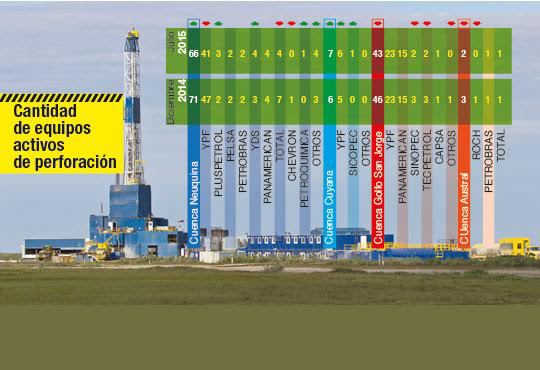 YPF, el mayor jugador del mercado, con un 35% de la oferta de hidrocarburos, contaba en diciembre con 75 equipos de perforación en actividad. En enero, subieron a 79. Hoy son 71. Fuentes ligadas al sector de servicios petroleros afirmaron que algunas unidades de drilling fueron transferidas bajo la órbita de Yacimientos del Sur (Y-Sur), que heredó los campos de Apache. La subsidiaria pasó de 3 a 4 equipos operativos. Explicaron, además, que la compañía incorporó equipos de tipo walking y skidding rigs para colocar pozos horizontales. Ese tipo de perforaciones requiere de menos equipos de perforación pero de mayor tecnología.
