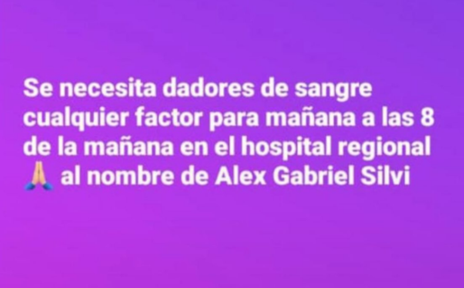 La familia del joven hace un llamado urgente a la comunidad para donar sangre de cualquier grupo sanguíneo, ya que es fundamental para su tratamiento y recuperación.