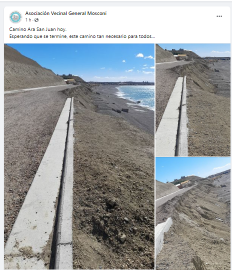 El camino ARA San Juan sigue sin avances significativos en lo que es la reparación y culminación del tramo afectado por las mareas extraordinarias en agosto del 2023.