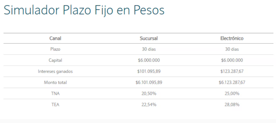 Cuánto se obtiene al invertir $6.000.000 en un plazo fijo a 30 días