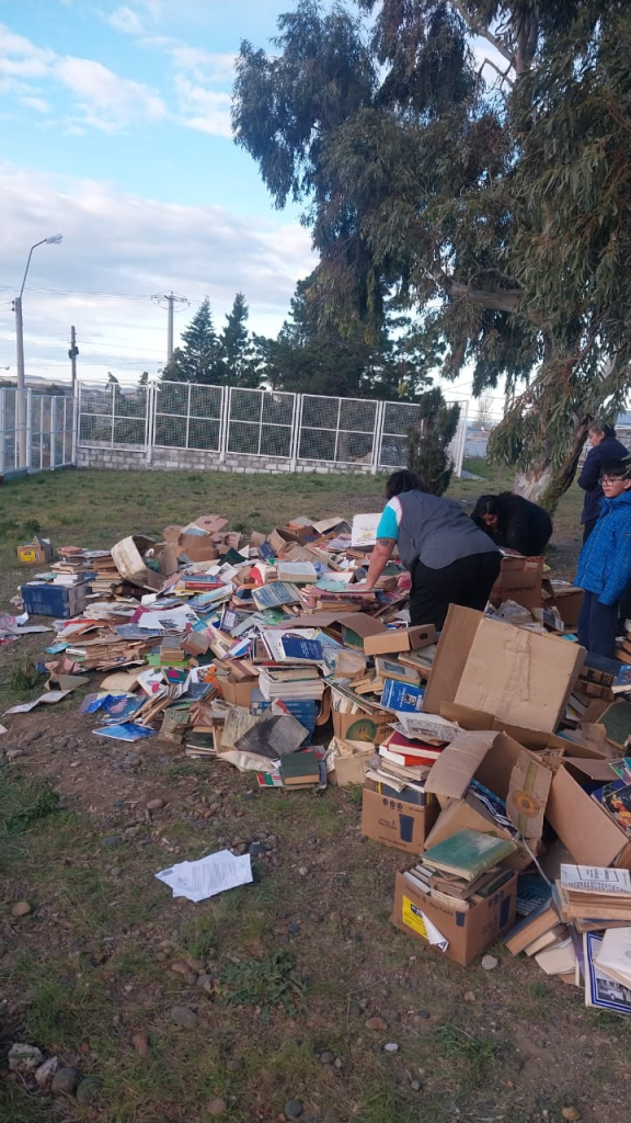 Barría indicó que cuando las autoridades intentaron mover el contenedor, se dieron cuenta de que era demasiado pesado, y por instrucción telefónica se decidió bajar los libros. “En ese momento pregunté qué iba a pasar con el material. Me dijeron que los vecinos podían llevarse algunos ejemplares, entonces avisé por el grupo barrial y varios se acercaron. Incluso jóvenes universitarios retiraron libros para estudiar. Pero eran demasiados, no alcanzaba”, explicó.