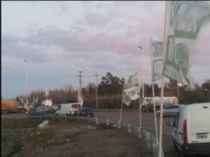 El transcurrir del Paro Nacional tiene esa imagen en Comodoro Rivadavia: se registra una gran concentración de camioneros en el cruce de rutas pero la circulación, hasta el momento, está liberada.